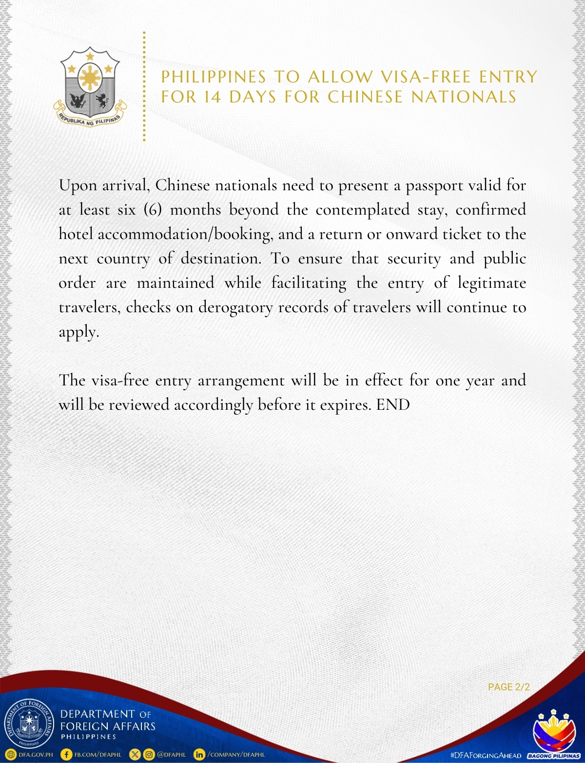 不过这个通知是菲律宾外交部发布的,应该是妥了。